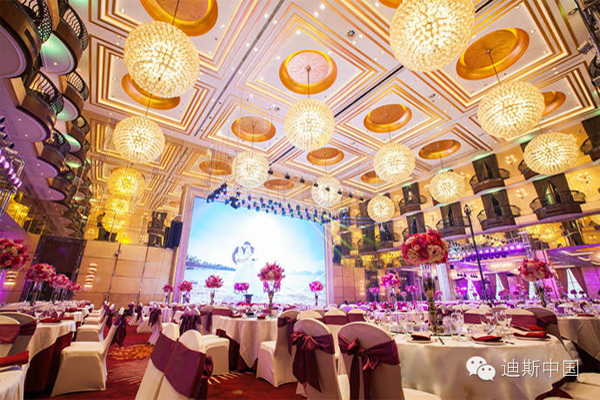宴会大厅扩声系统设计主要设计应用了DESFINE迪斯品牌DQ76专业工程系列音箱、DS98线阵列音箱。